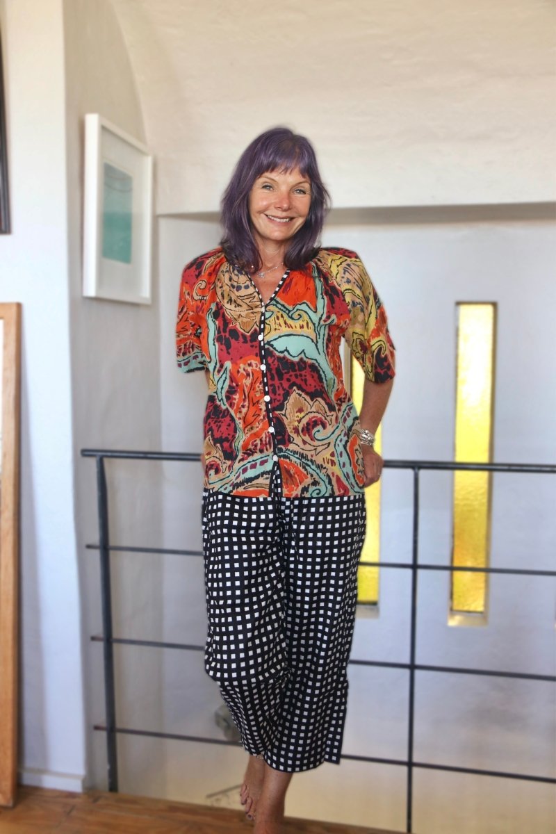 The roomy short sleeved blouse provides for an elegant, loose and flexible fit, and the elasticised, straight cut "capri-style" three quarter length Ā trouser, ensure a comfy fit for all body types.Ā