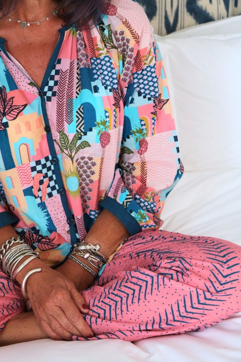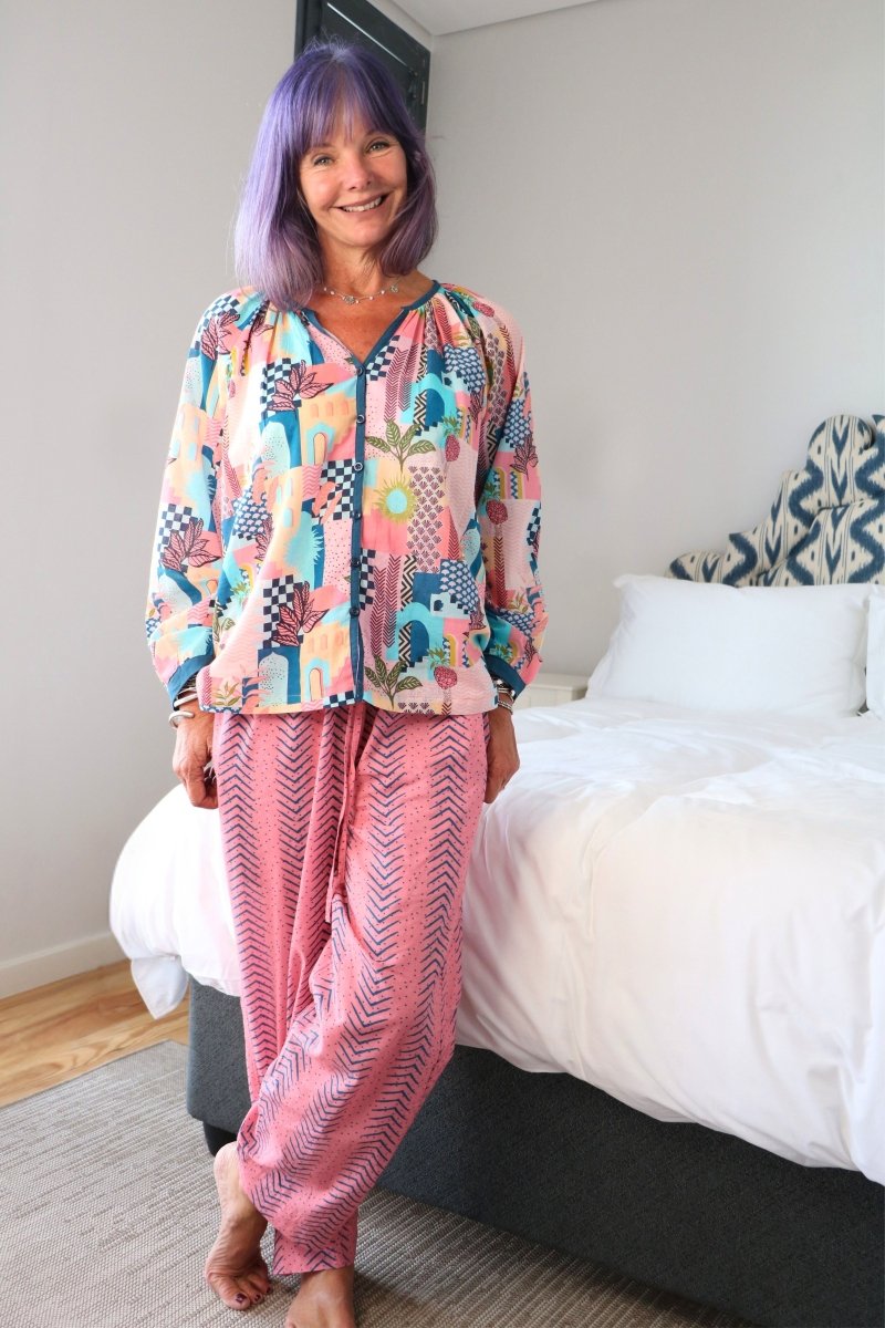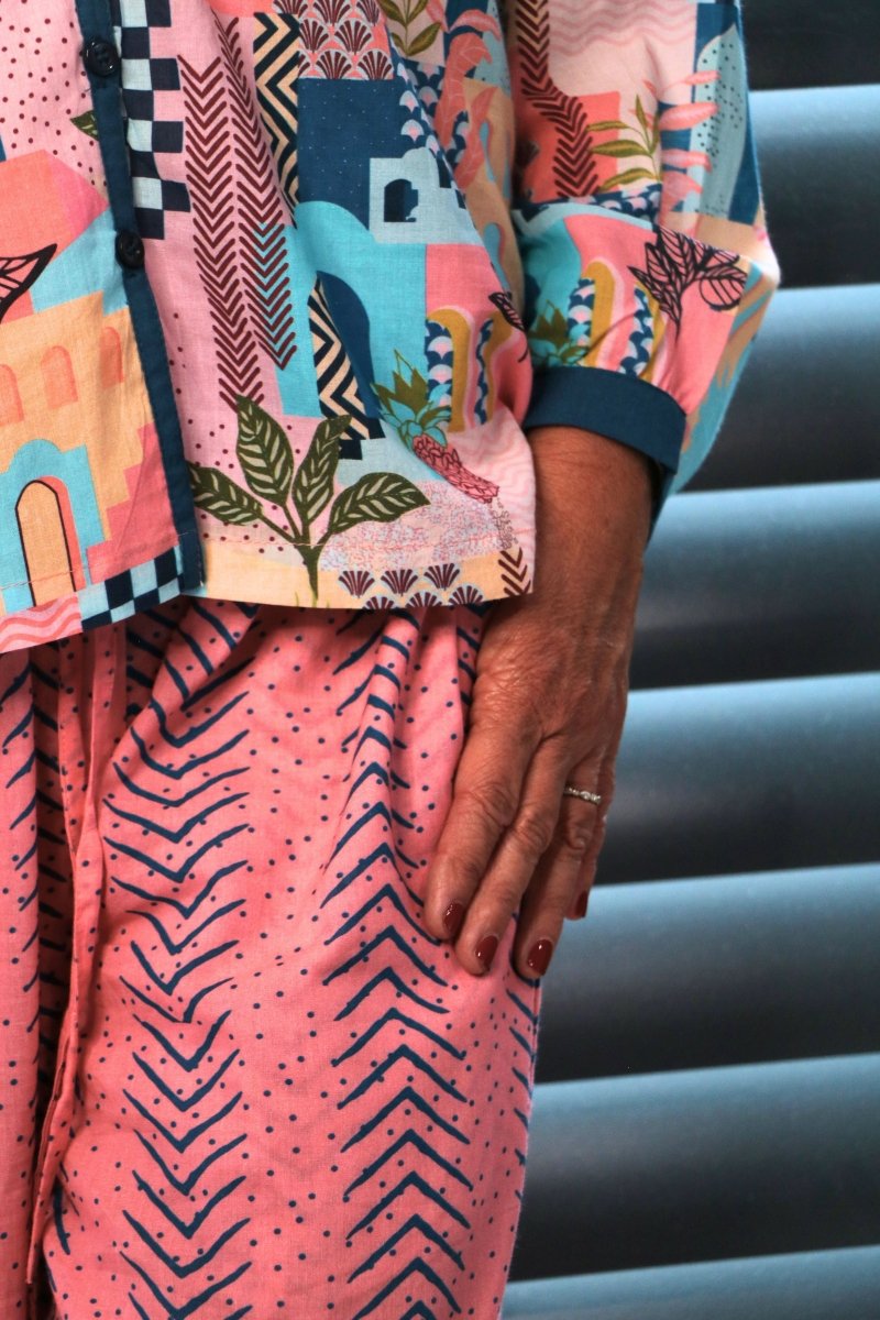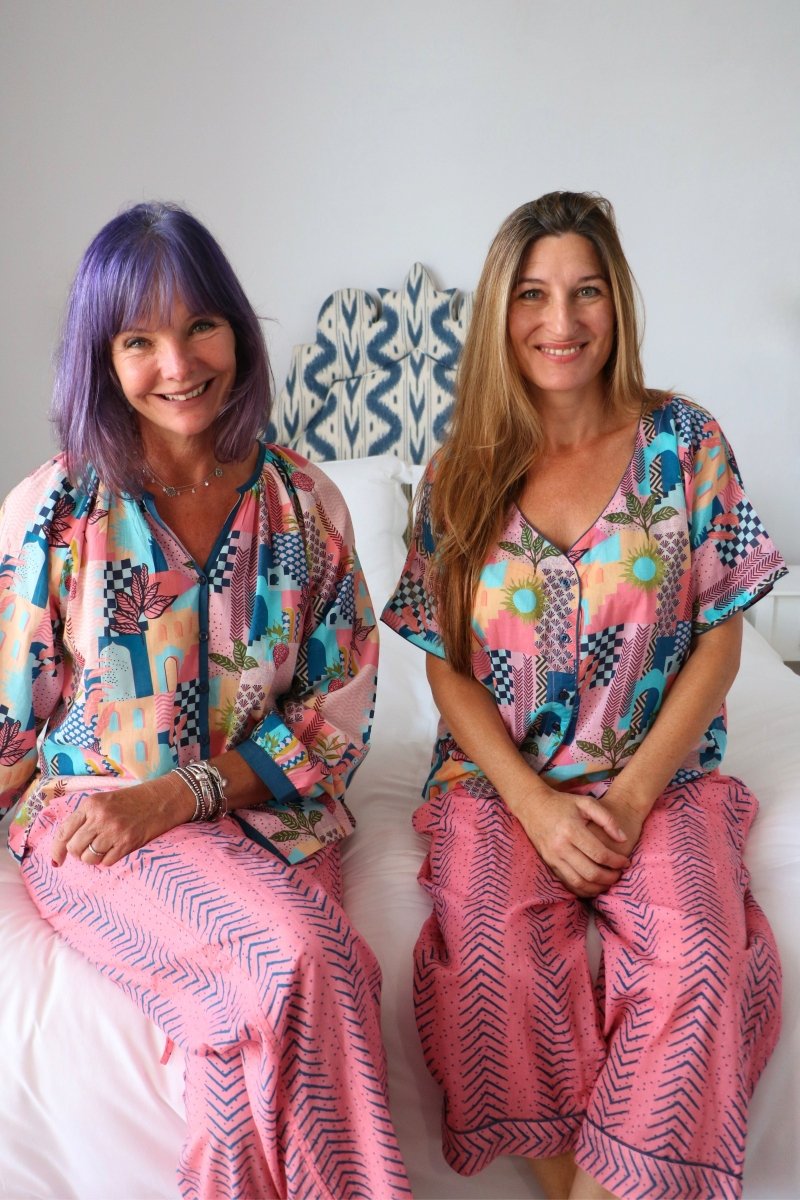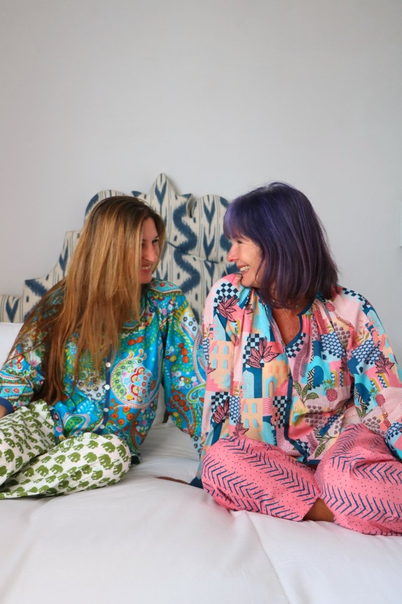 Treat yourself to luxury and comfort with our 100% cotton slumber-wear that's as practical as it is stylish. Designed in France and crafted in India from the purest organic cotton, our pajama sets come in matching drawstring bags for easy storage and travel. The roomy three-quarter sleeved top provides for a loose and flexible fit, and the elasticised, straight cut pants ensure a personalised fit for all body types. Whether you're lounging around at home or sound asleep, our Gawjus-ly tailored slumber-wear will keep you cozy and comfortable all day and all night long!