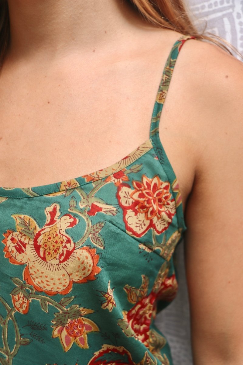 Light, floaty, and made for long summer days. This 100% cotton voile set comes in our beautiful moss print — soft to the touch and even softer to wear. The top has adjustable straps for the perfect fit, paired with relaxed shorts that make lounging an art form. It’s cool, breathable, and effortlessly flattering. Our model - hannah - wears a small. Your go-to summer set — divine comfort meets easy style.